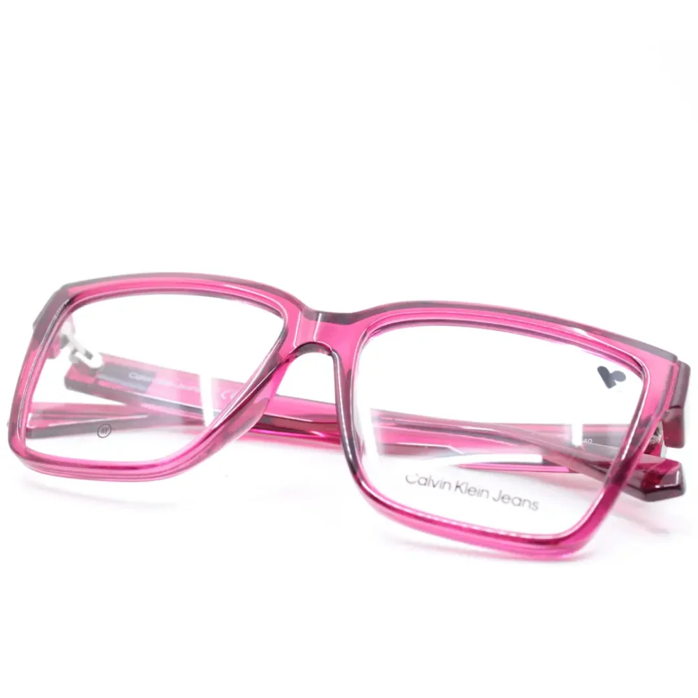 Crafted by the iconic Calvin Klein Jeans brand, these eyeglasses embody a youthful and edgy aesthetic. The rectangular frame shape offers a universally flattering fit, while the lightweight yet durable construction ensures lasting wear. The translucent pink hue adds a playful pop of color without being overpowering, making them versatile enough for both professional settings and casual outings.